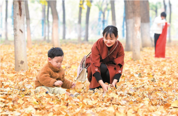 江灘落葉美 游人打卡忙江灘落葉美 游人打卡忙