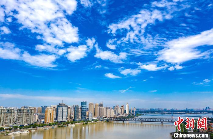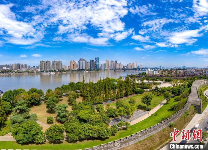 湖北襄陽:藍(lán)天白云映古城