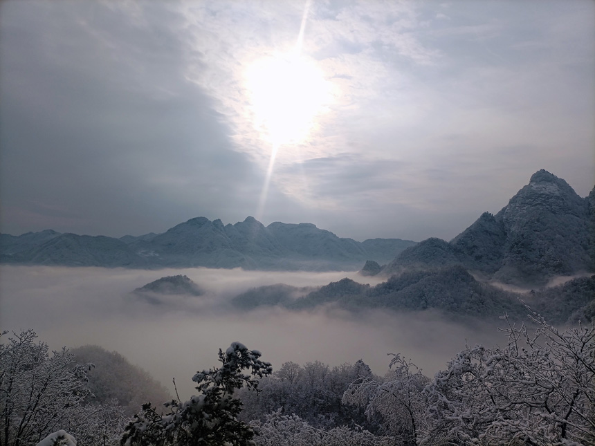 湖北十堰:武當(dāng)山銀裝素裹 云霧繚繞美如畫